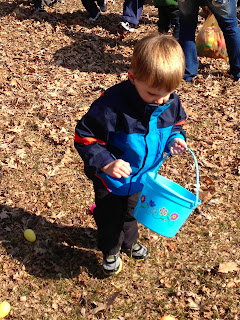 ben didn't want to go downstairs when he woke up. he has done this on christmas too. i think he's afraid that the easter bunny, or santa, will still be there!